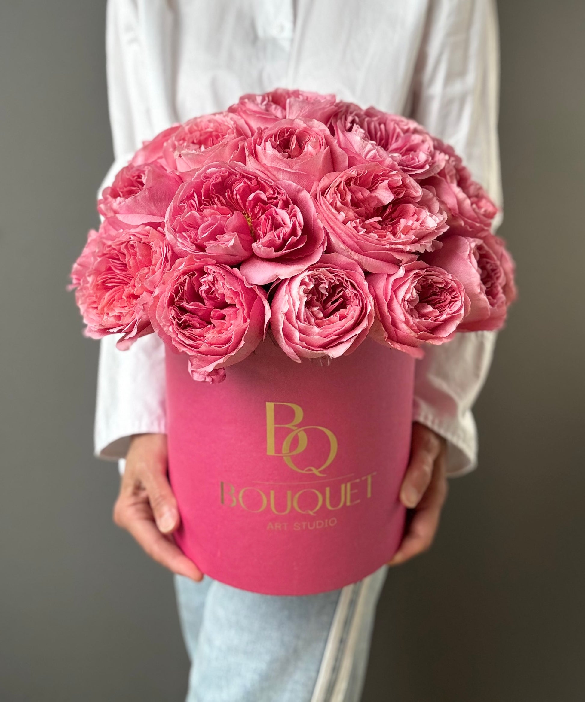 Luxury hat box arrangement made with premium Candy Expression garden roses. These peony-style roses are known for their lush petals, soft pink color, and romantic, full-bloom appearance. Perfect for birthdays, anniversaries, weddings, proposals, and luxury gifts in Orange County. Handcrafted by BQ Bouquet using fresh, high-quality flowers and elegant packaging.